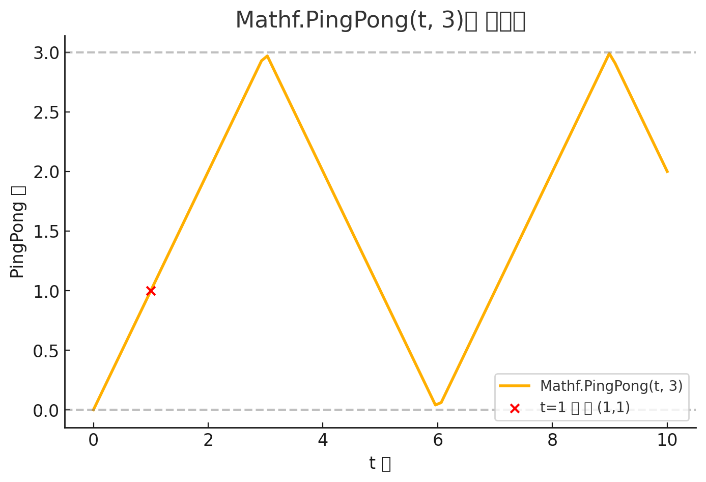 Mathf.PingPong(int t, int length) 는 t값에 따라 0~length의 값을 반환한다. 예를들어