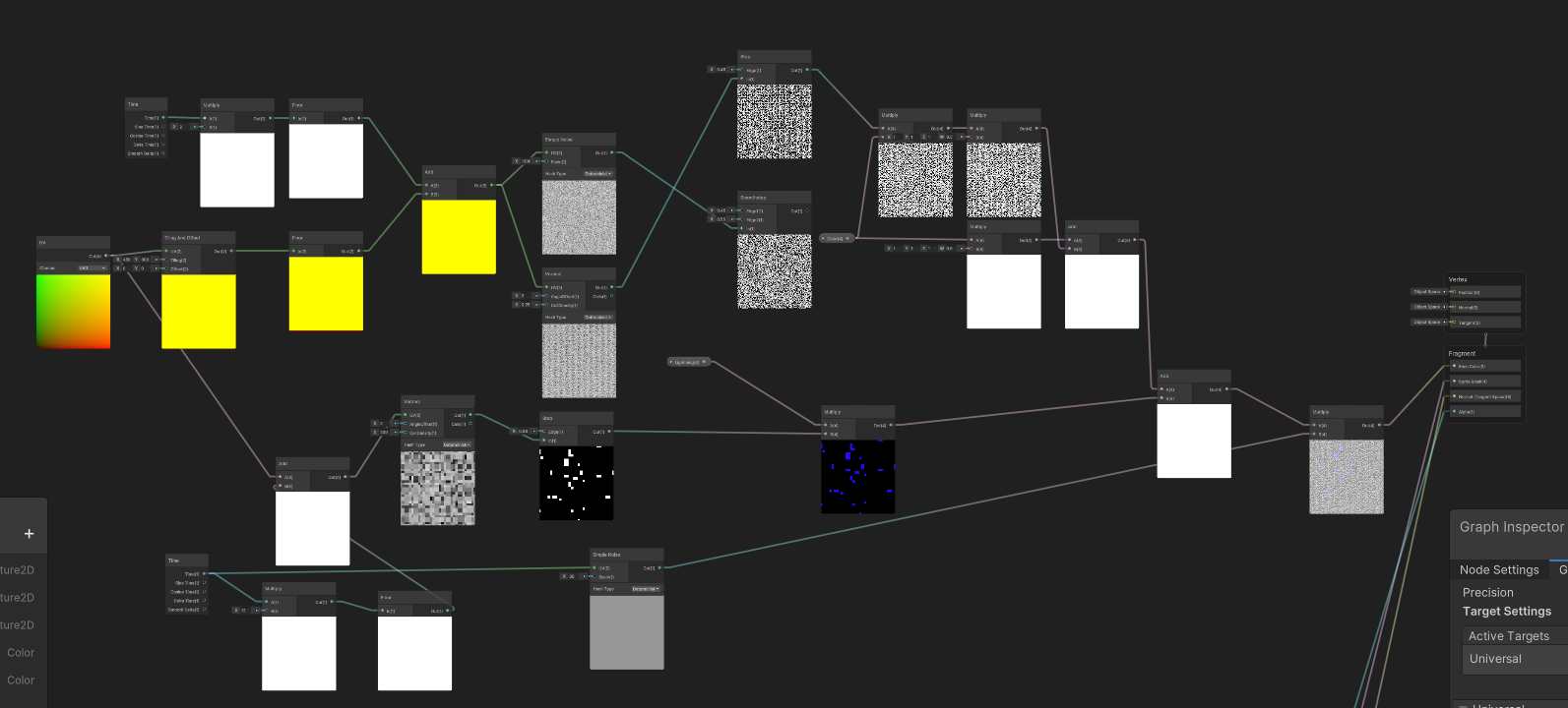 20250513 TIL 쉐이더 그래프 첫 사용 쉐이더 그래프를 처음 사용해보았다 UV-Tiling-floor를 통해서 도트느낌을 주었고time-noise를 통해서 흐르는 느낌을 주었다 voronoi로 변경됨 noise = 노이즈느낌 voronoi 세포느낌이를 step 처리하여 명확한 경계선을 만들어준후 외부 패러미터로 color를 multiply해주었다 카테고리 없음 2025.05.13